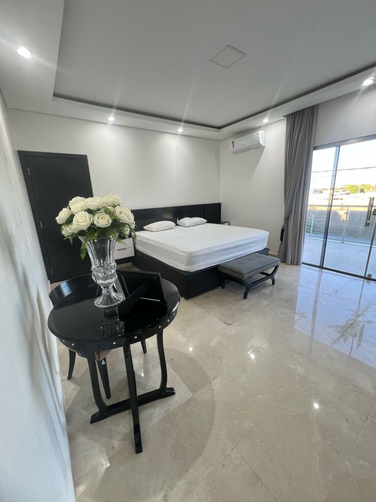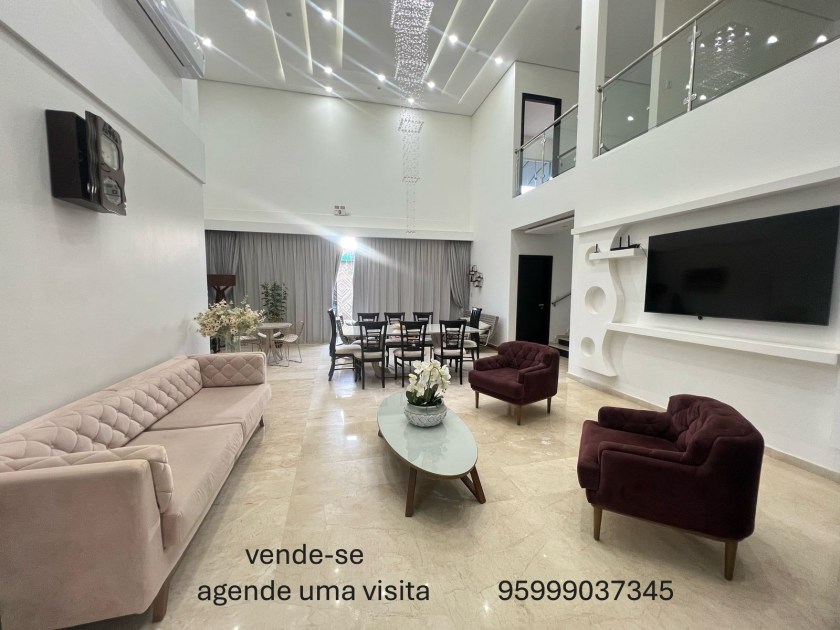 - vende-se essa casa com 560 m2 de construção; com 4 suítes, 2 banheiros sociais dentro da casa, 1 banheiro na área externa, piscina, cozinha gourmet, adega, garagem para 2 carros, sala nos 2 pisos, sala de musculação, escritório, casa toda mobiliada, com destaque para o mármore original da Espanha. fica a poucos metros do hotel íbis e do pátio shopping caumé. próxima de mercados e a 15 minutos do centro. localizada às margens da br-174 – sentido Venezuela.